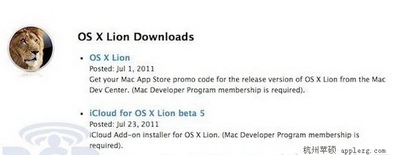 截图显示,苹果于美国时间23日发布了iCloud for OS X Lion的第五个测试版,然而,苹果提示,开发者需要安装OS X Lion 10.7.2才能使用iCloud for OS X Lion第五个测试版。OS X Lion 10.7.2目前还只是个测试版,单独用来测试iCloud的性能。奇怪的是,开发者并未在Mac OS X Lion专栏下找到这个所谓的OS X Lion 10.7.2测试版,只能截图中的链接进入下载。